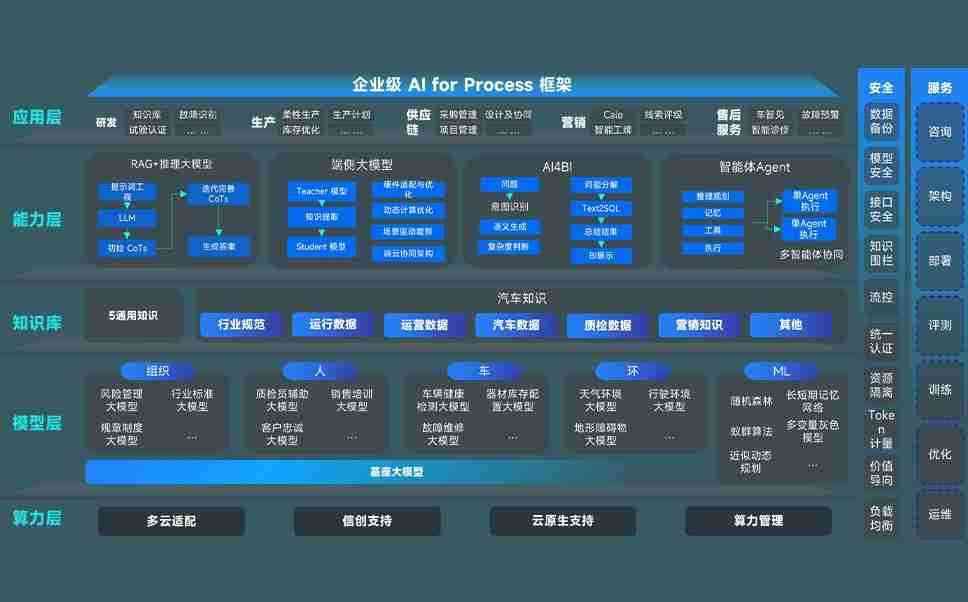 端到端的一站式AI工作空间深度融合了从企业战略规划到日常经营的全流程业务板块,,,,定向解决车企内部领域多、、部门多、、、链条长、、场景碎片化等难题,,,支持车企快速构建以AI为核心的生产力写作体系,,实现任务执行与AI能力的无缝集成与交互